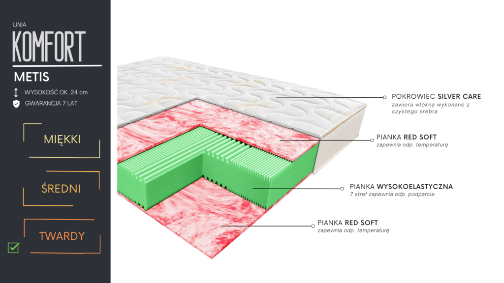 UWAGA – Pokrowiec Tencel jest pokrowcem przypisanym do tego materaca i w takim pokrowcu materac zostanie wysłany, w przypadku zmiany pokrowca na Silver Care prosimy taką informację umieścić w polu UWAGI podczas składania zamówienia.
