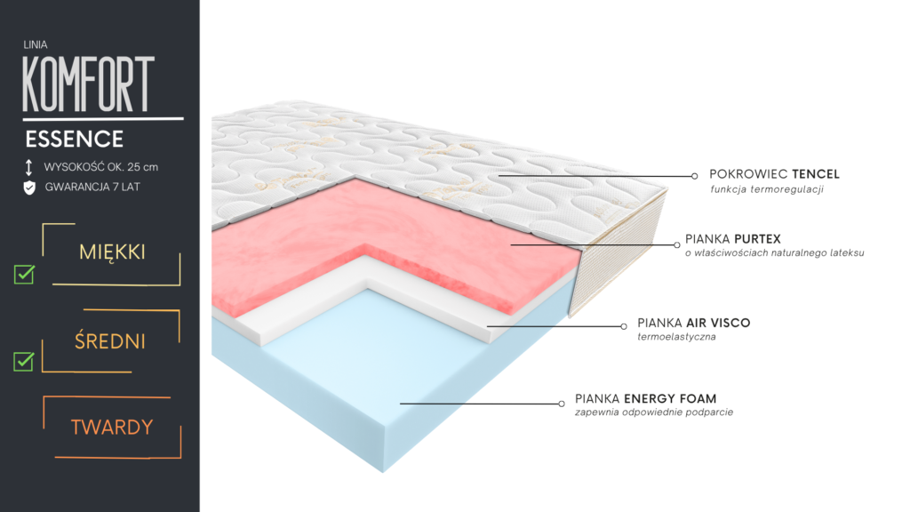 UWAGA – Pokrowiec Tencel jest pokrowcem przypisanym do tego materaca i w takim pokrowcu materac zostanie wysłany, w przypadku zmiany pokrowca na Silver Care prosimy taką informację umieścić w polu UWAGI podczas składania zamówienia.